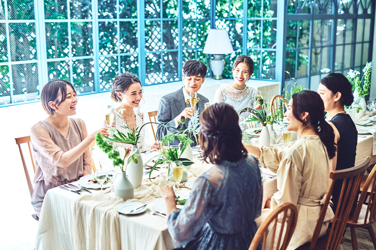 こだわりのドレスが足元まで見え、お気に入りのブーケと一緒に過ごせるパーティは他にない魅力。