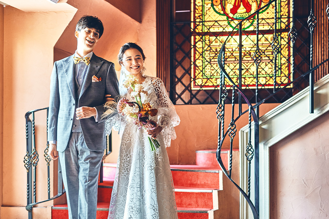 ご友人やオルガニストの演奏に合わせて入場も可能です。ウェルカムボードやおふたりらしいデコレーションを施しても。ステンドグラスはフォトジェニックなフォトロケーションとしても人気です。