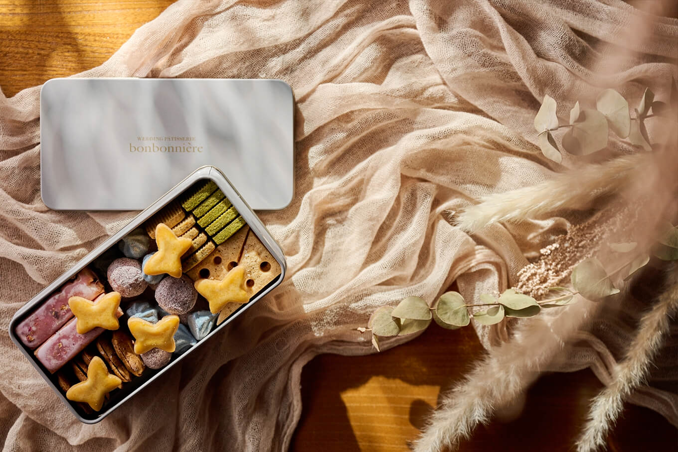 専属パティシエが日々手作りしているアイテムは、パーティを彩る料理のデザートやウエディングケーキだけでなく、引菓子やプレゼントとなるギフトも。