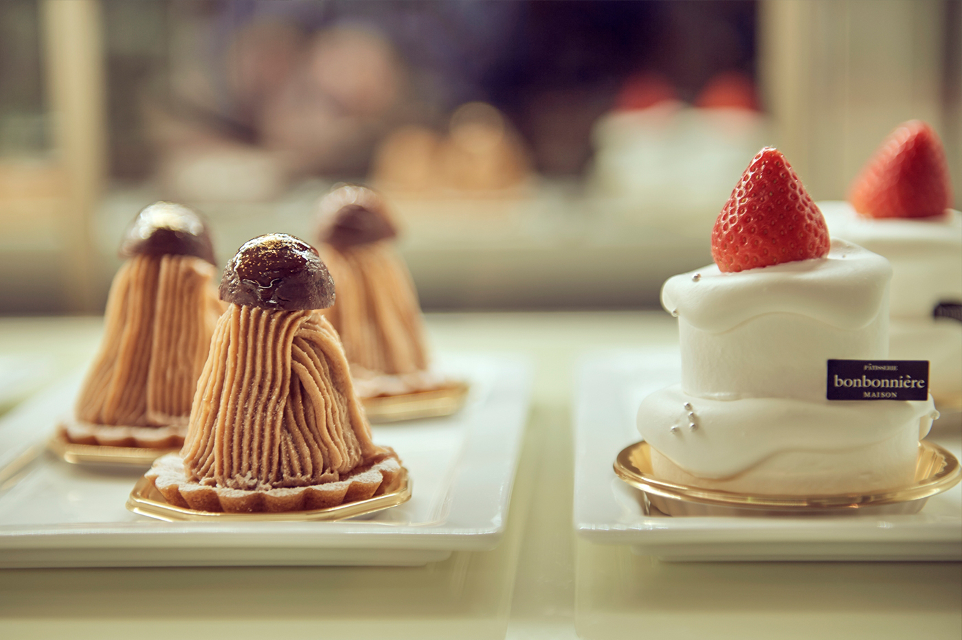 スイーツのオリジナルブランド 【ボンボニエール】のパティスリーで専任のパティシエが丁寧に心を込めて手作りされるスイーツ。